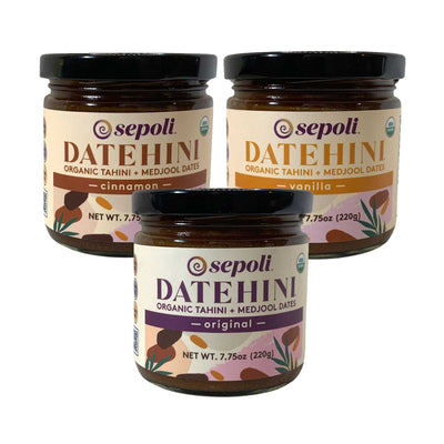 Simple, on the surface, but the magic is in the method. Our organic and sustainably sourced medjool dates are roasted and pureed to add a natural sweetness. The sesame seeds are hulled, toasted dry and stone ground to a precise consistency to maximize creaminess of the savory tahini. The ratio of both is dialed-in to balance the texture and taste of the Sepoli blend. More dates increase fruity notes, while added tahini develops its umami depth. Finding that golden mean is what makes Datehini sing with every swirl.