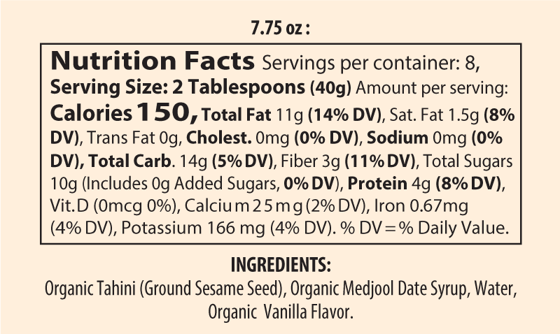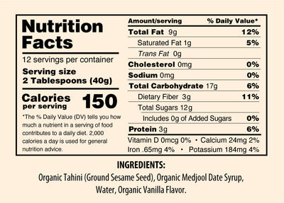 Rich in vitamins, minerals, and protein, Vanilla Datehini packs the same organic energy as our Original's dates and sesame, while pairing extra deliciously with bananas in fruit bowls and smoothies.